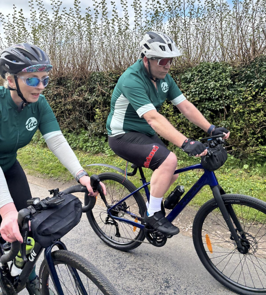 Amanda trains with fellow-cyclist & fundraiser, Joby Mortimer of Licensed Trade Charity